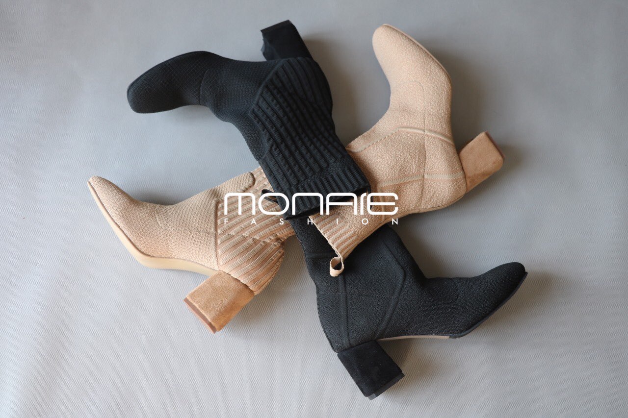 نیم بوت زنانه بتی با پاشنه نسبتا بلند یکی از جدیدترین طراحی بوت های دخترانه و جوان پسند برند مونایی می باشد. این کفش بدون زیپ و بند می باشد که به دلیل نرمی آن به راحتی قابل پوشیدن و درآوردن می باشد و با رویه ی جورابی خود مناسب برای فصول مختلف سال می باشد. این کفش رویه ی نرم و انعطاف پذیری دارد که موجب حس راحتی در پا می شود. جنس زیره استفاده شده در این محصول TPU می باشد که خاصیت های اصطکاک بالا، عایق حرارتی و عدم شکنندگی دارد و در مکان لغزنده سر نمی خورد. این بوت زنانه به صورت ویژه در دو طرح بتی و بتی لاین و همچنین در دو رنگ کرم و مشکی طراحی شده است بسیار مناسب برای کسانی است که همواره می خواهند متفاوت بوده و استایل شیکی داشته باشند. این محصول با اطمینان مورد پسند خانم های شیک پوش و باسلیقه می باشد. این محصول به دلیل طراحی ساده و راحتی در پوشیدن آن به مدل چلسی نیز معروف است. در صورت استفاده مناسب، این محصول دوام و استحکام بالایی دارد و می توان سال ها از آن استفاده کرد. این مدل شیک و دخترانه توصیه برند مونایی برای جوانان می باشد.لازم به ذکر است این مدل به دلیل جنس رویه خاص خود ضد آب نمیباشد.