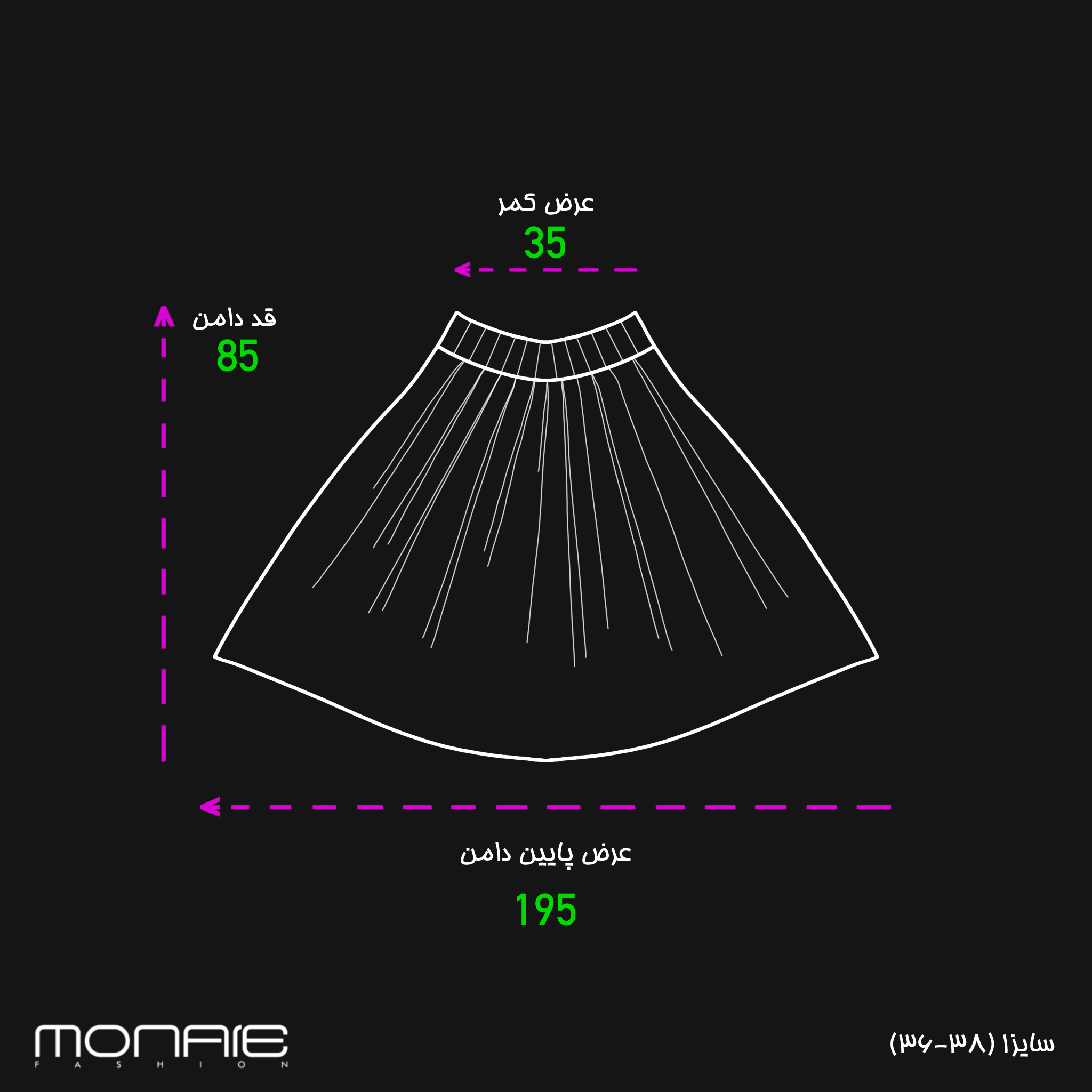 قد دامن | عرض پایین دامن | عرض کمر | سایز |
