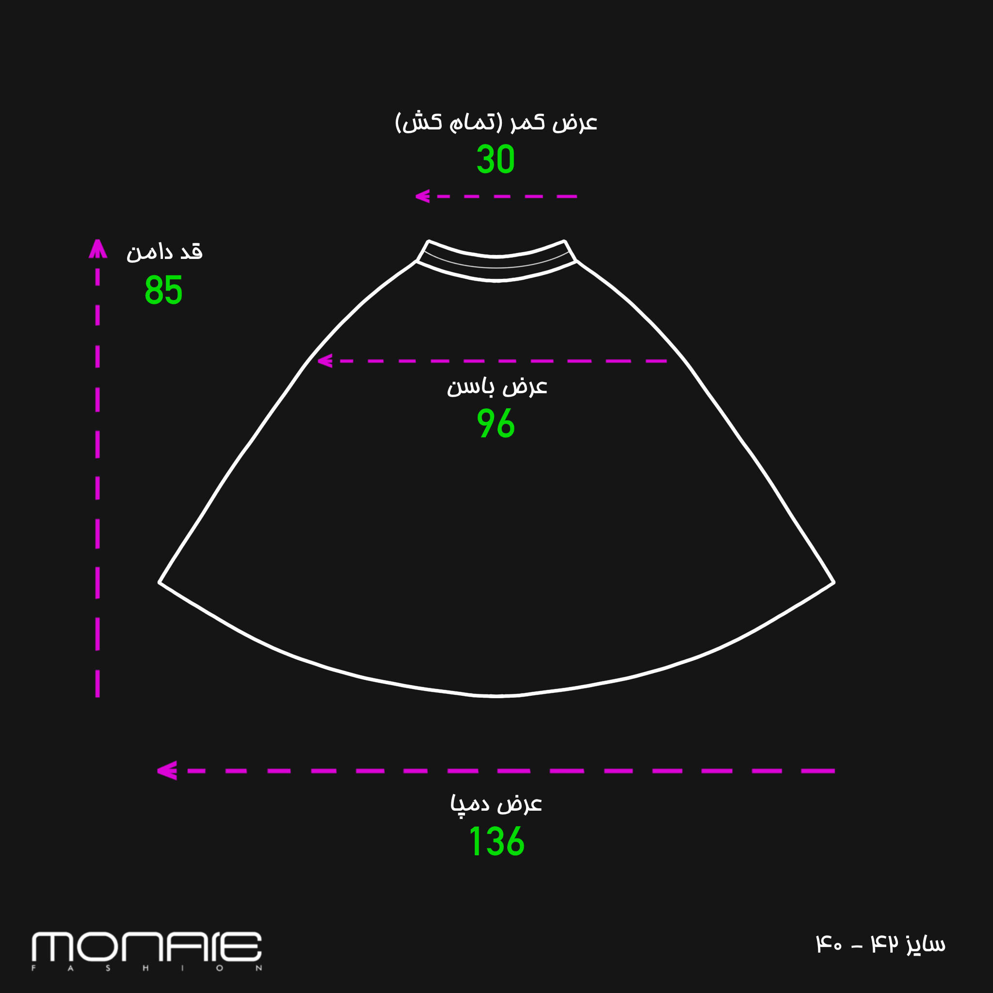 قد دامن | عرض دمپا | عرض باسن | عرض کمر (تمام کش) | سایز |