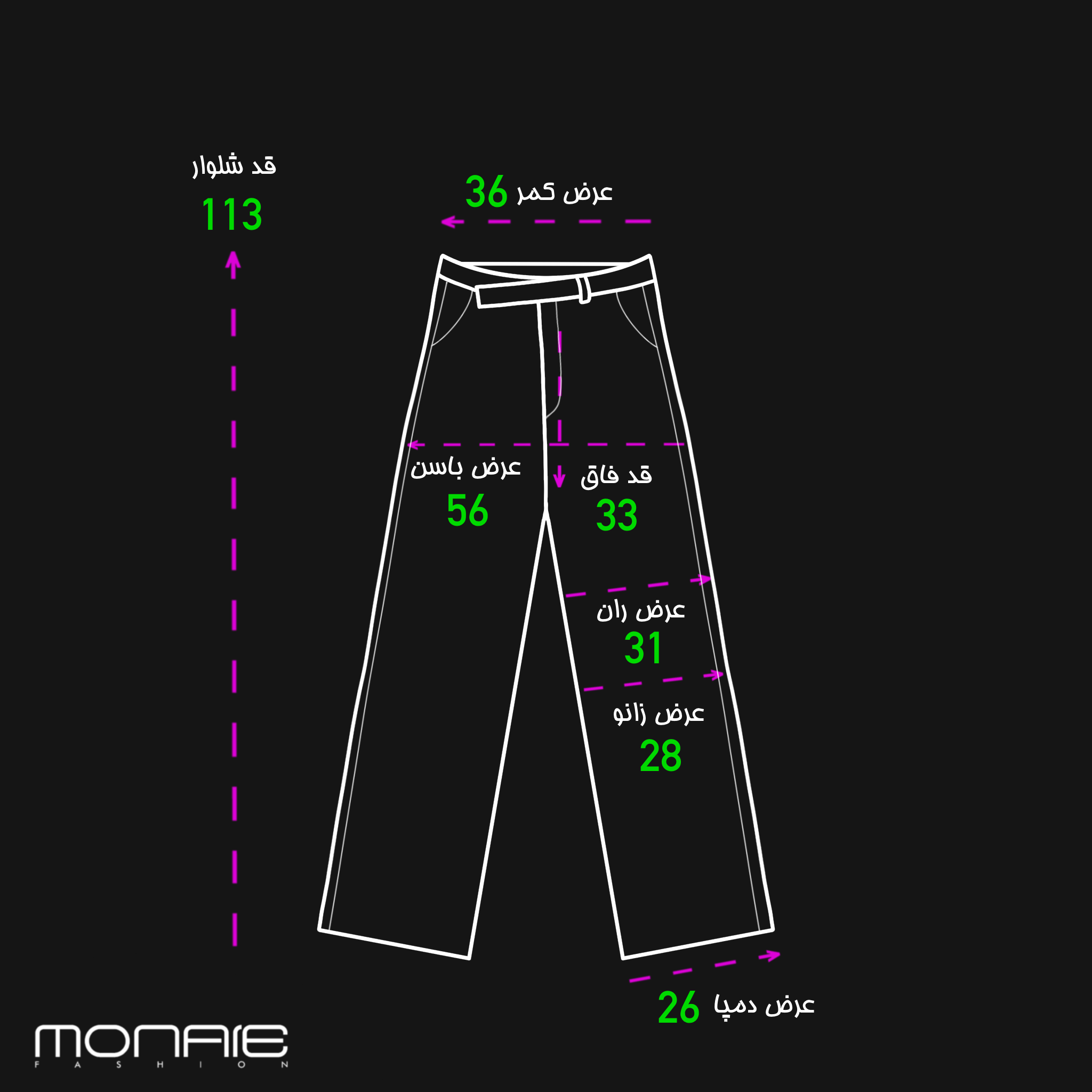 113cm | 26cm | 28cm | 31cm | 33cm | 56cm | 36cm | تک سایز (مناسب 36 تا 38) |