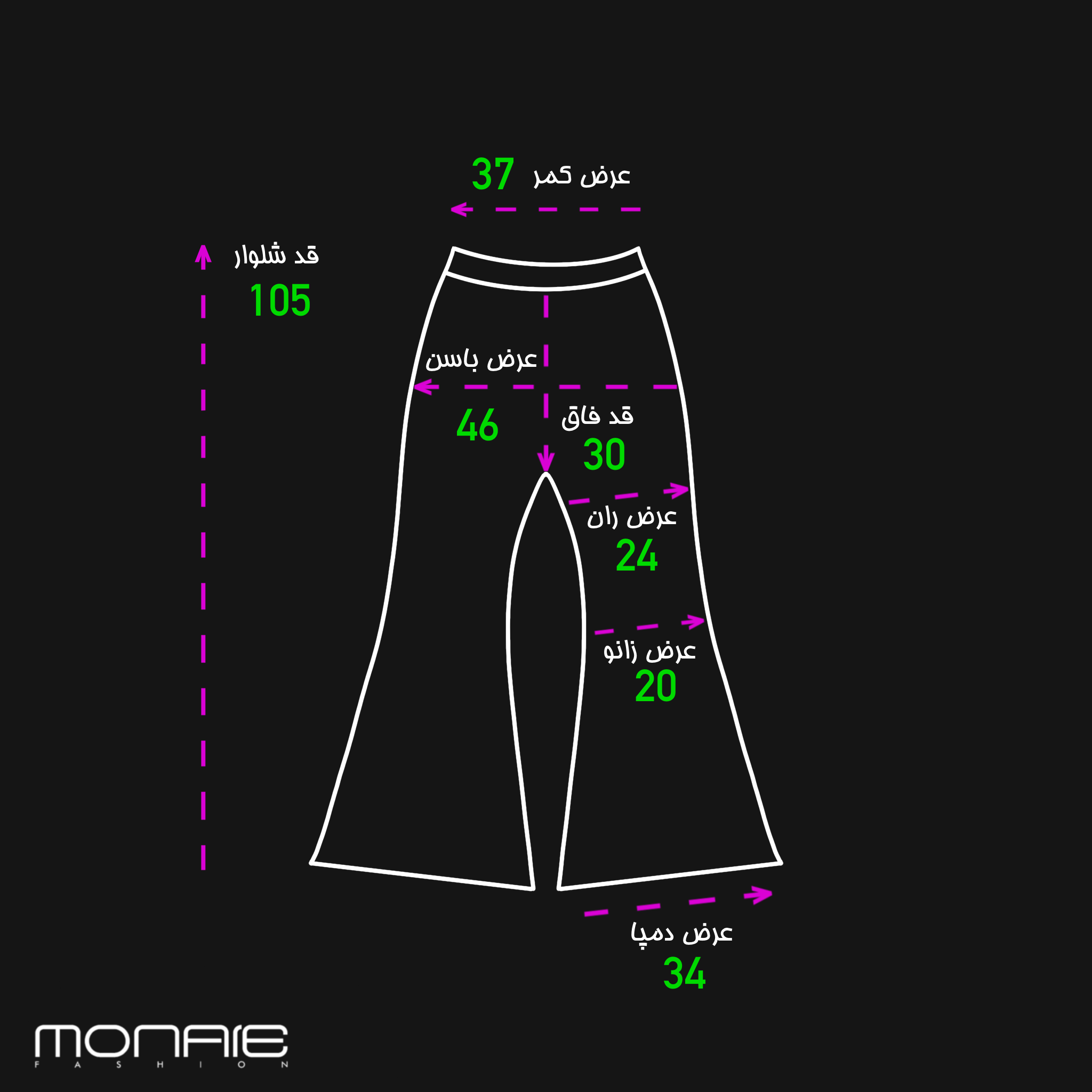 قد شلوار | عرض دمپا | عرض زانو | عرض ران | قد فاق | عرض باسن | عرض کمر | سایز |