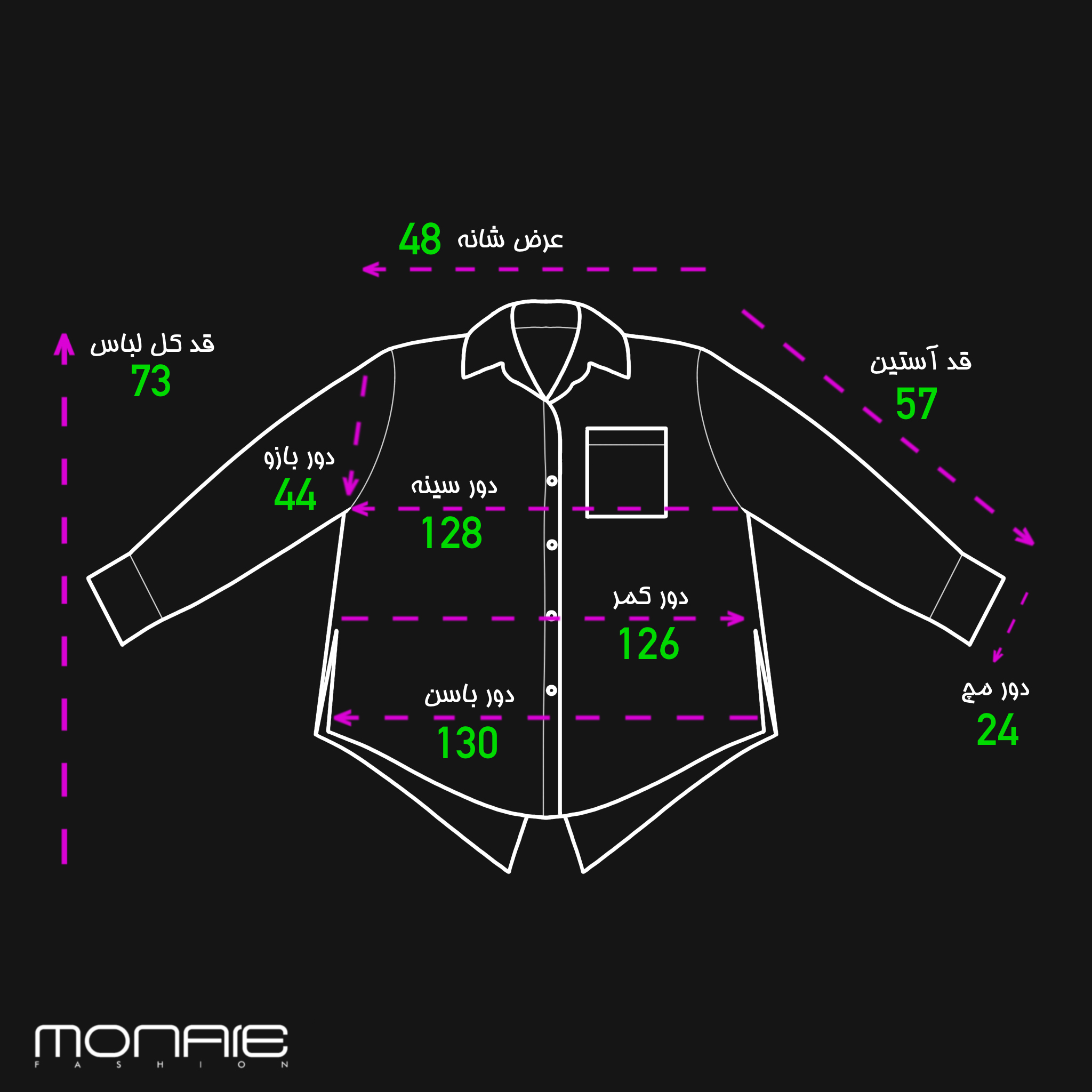 73cm | 24cm | 57cm | 44cm | 130cm | 126cm | 128cm | 48cm | فری سایز(مناسب تا سایز 44) |