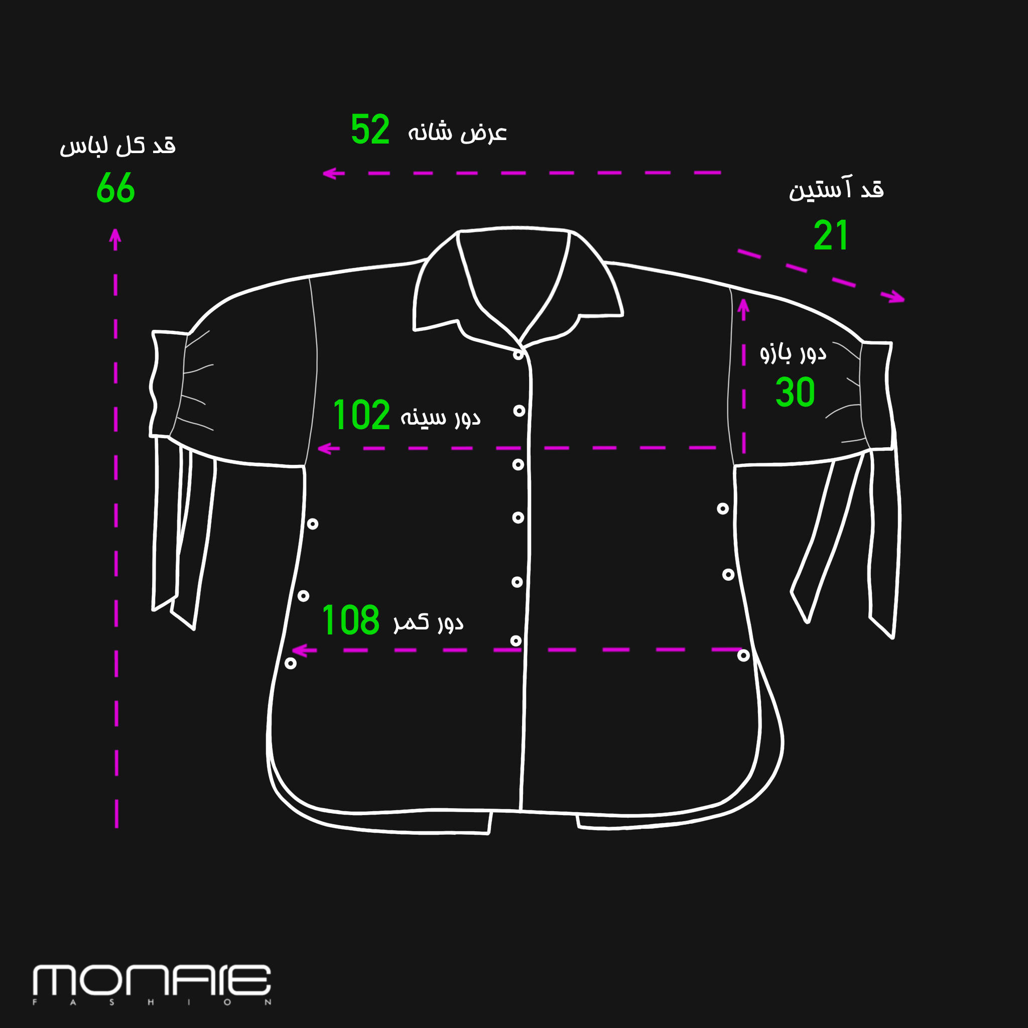 دور کمر | دور بازو | قد کار | قد استین | دور سینه | عرض شانه | سایز |