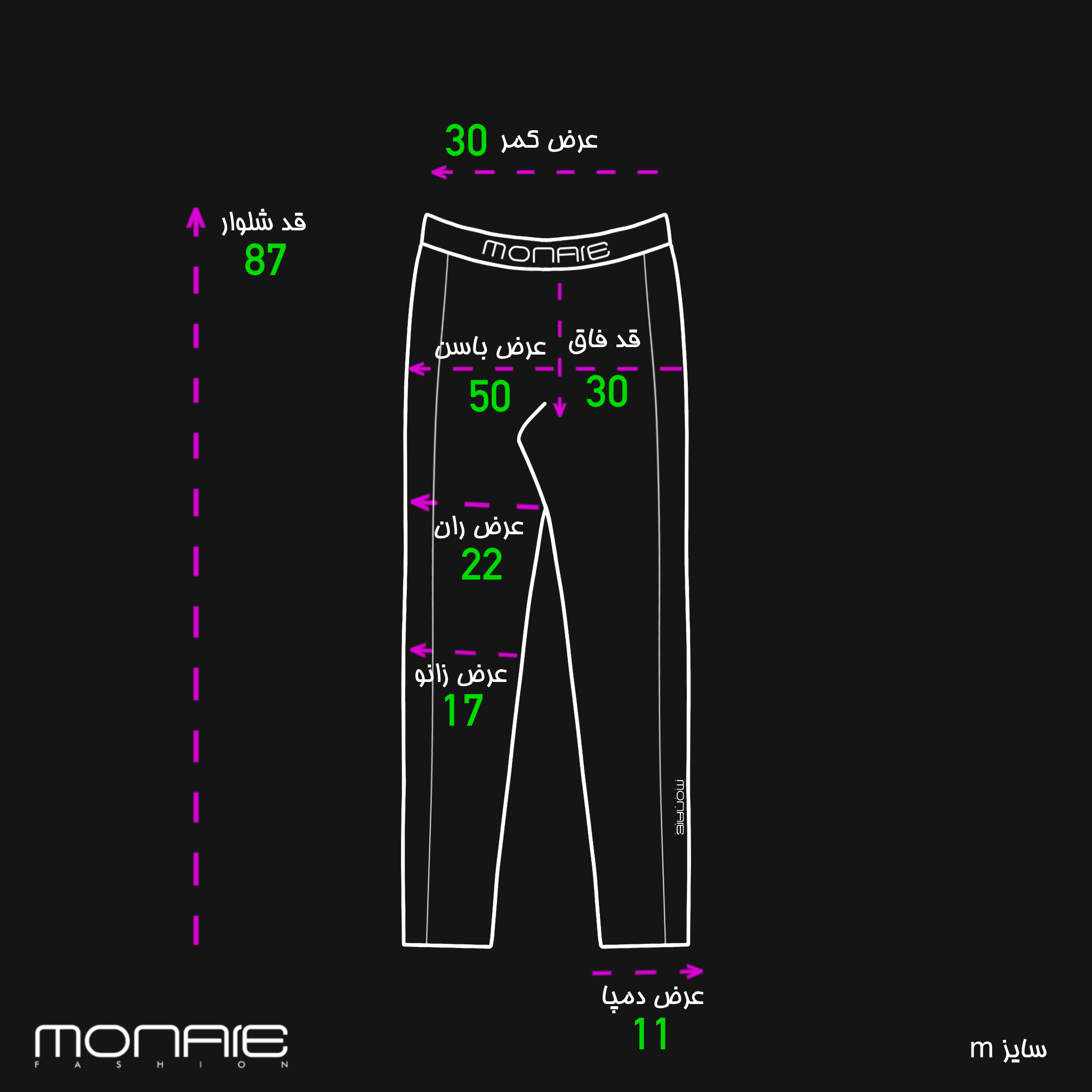 قد شلوار | عرض دمپا | عرض زانو | عرض ران | قد فاق | عرض باسن | عرض کمر | سایز |